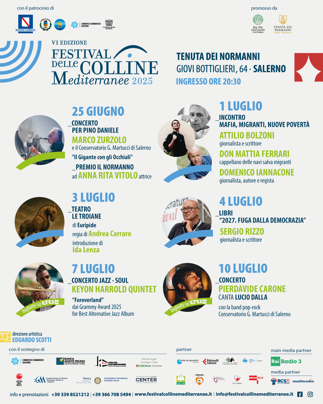 Sei serate, dal 25 giugno al 10 luglio 2025, nella cornice suggestiva dell’anfiteatro della Tenuta dei Normanni: il sesto “Festival delle Colline Mediterranee” riproporrà la formula che ha garantito il successo delle precedenti edizioni, con un’alternanza di momenti di confronto su temi di grande attualità e di serate dedicate a musica, teatro e spettacoli live.